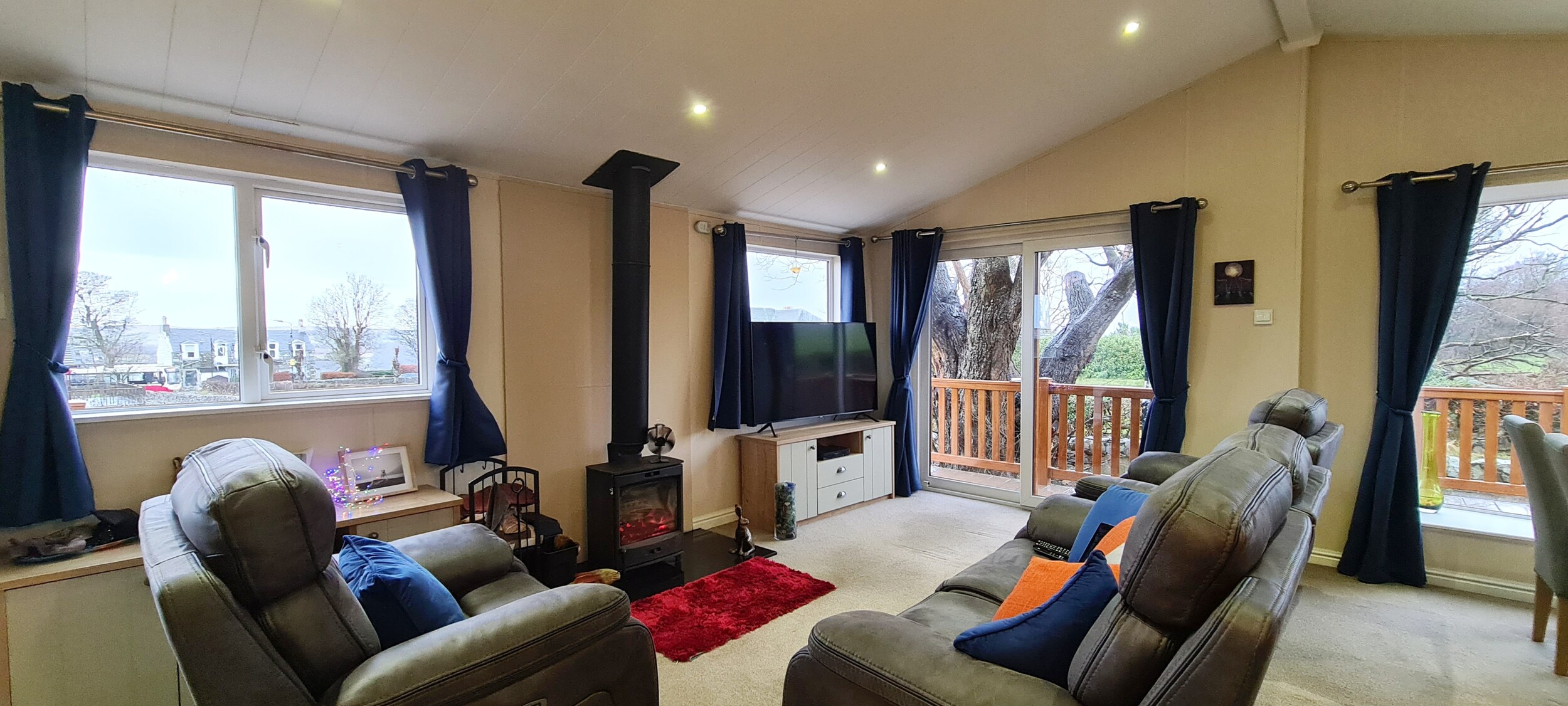 A rare opportunity to purchase a luxurious two bedroom chalet boasting beautiful and unique design features in contemporary style. Warm and inviting and ideal to relax in comfort and style to escape the hustle and bustle of everyday life. Located in a quiet area of Roseland Lodge Park with delightful hill and rural views. Fantastic open plan living space with patio doors out to the suntrap large decked veranda. The chalet is located just one mile from Rothesay’s town centre and has the advantage of a restaurant just a couple of minutes walk away.