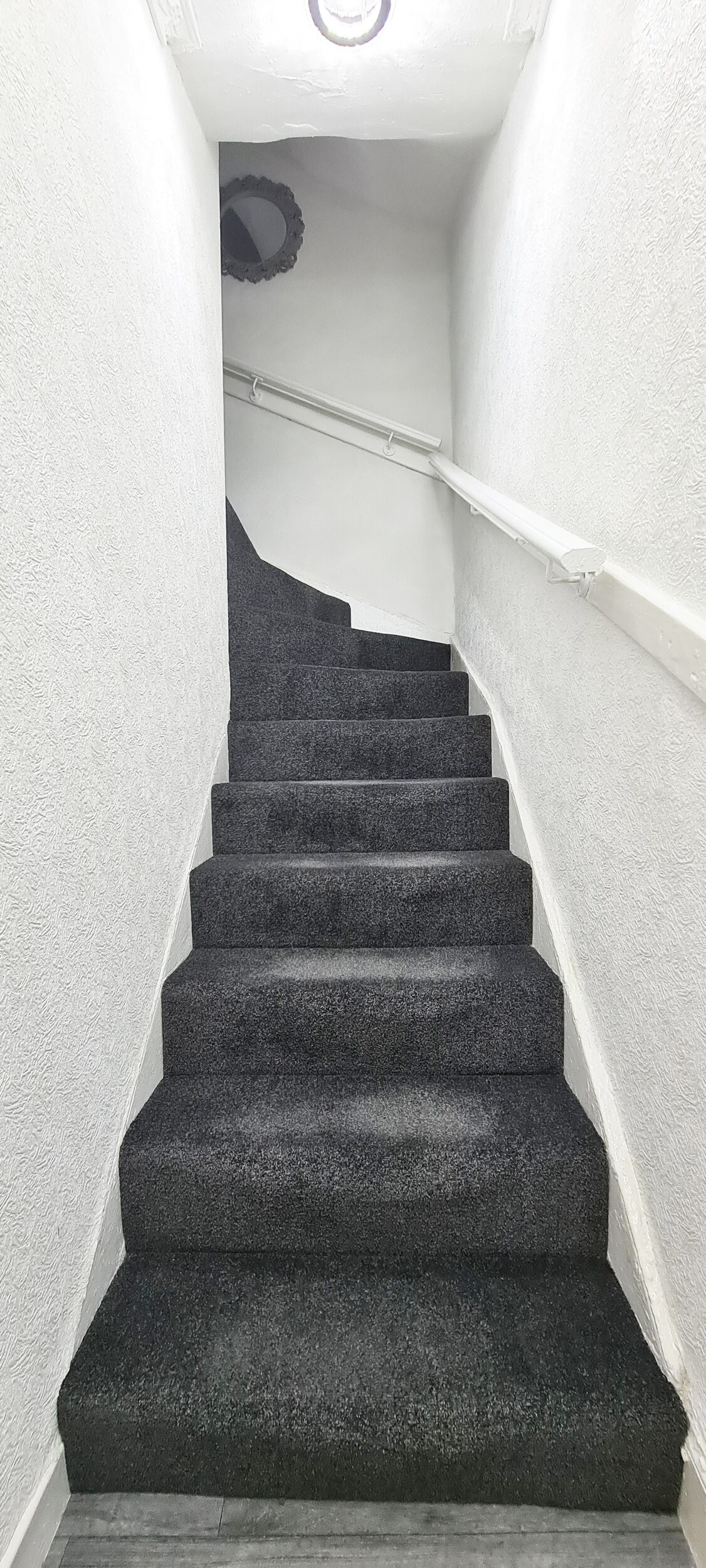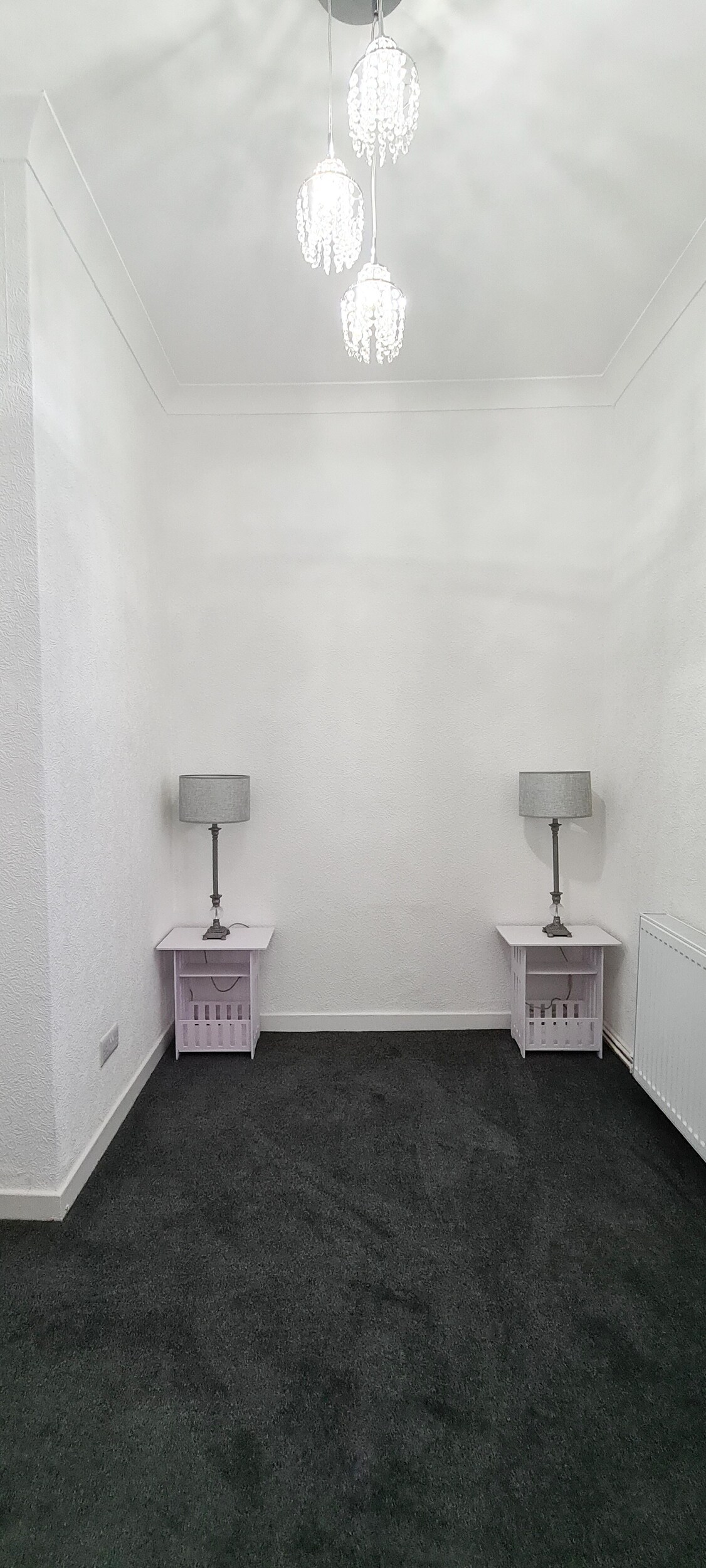 Wall light. Doors to Lounge, Second Bedroom and Bathroom. Carpet.