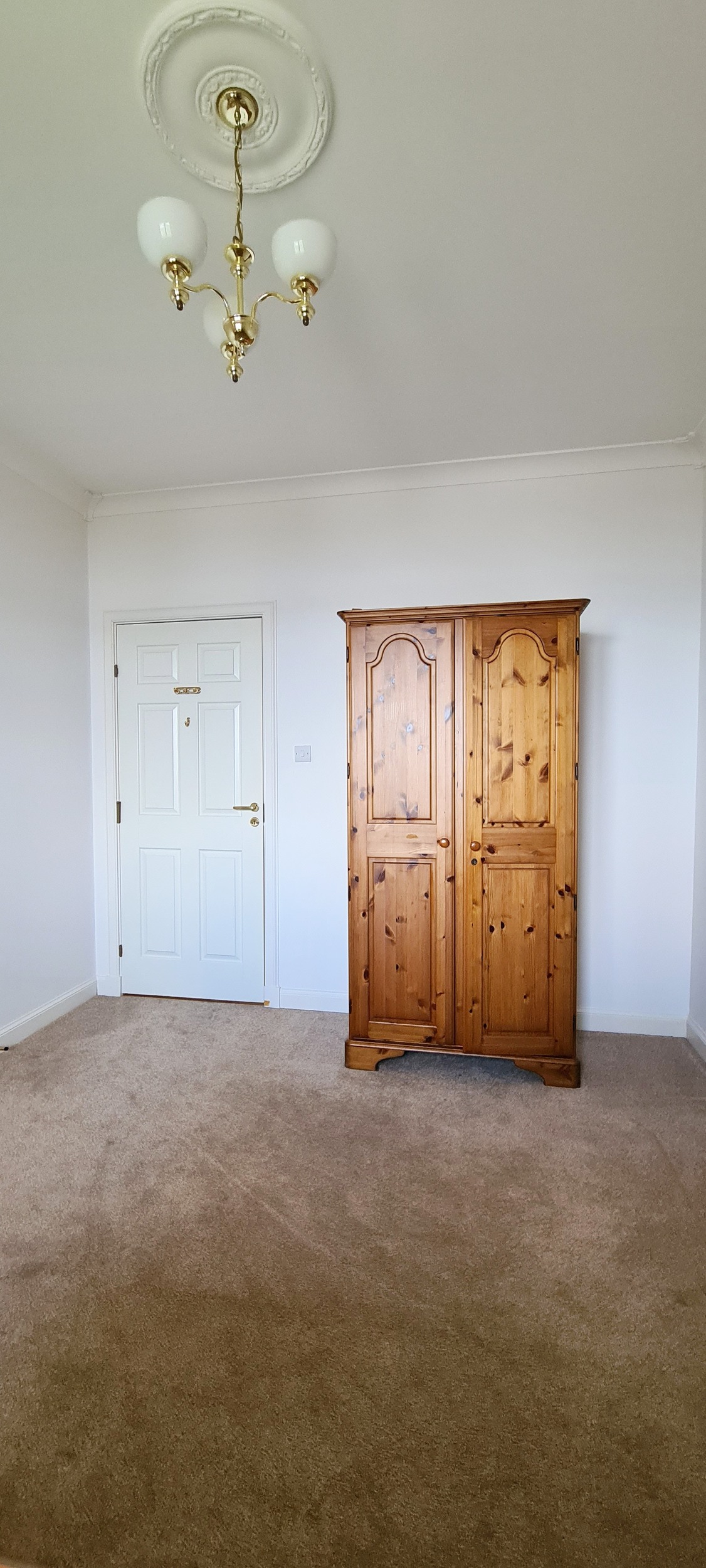 Double bedroom with two windows to front to enjoy the wonderful sea view. Ceiling light. Curtains. Carpet.