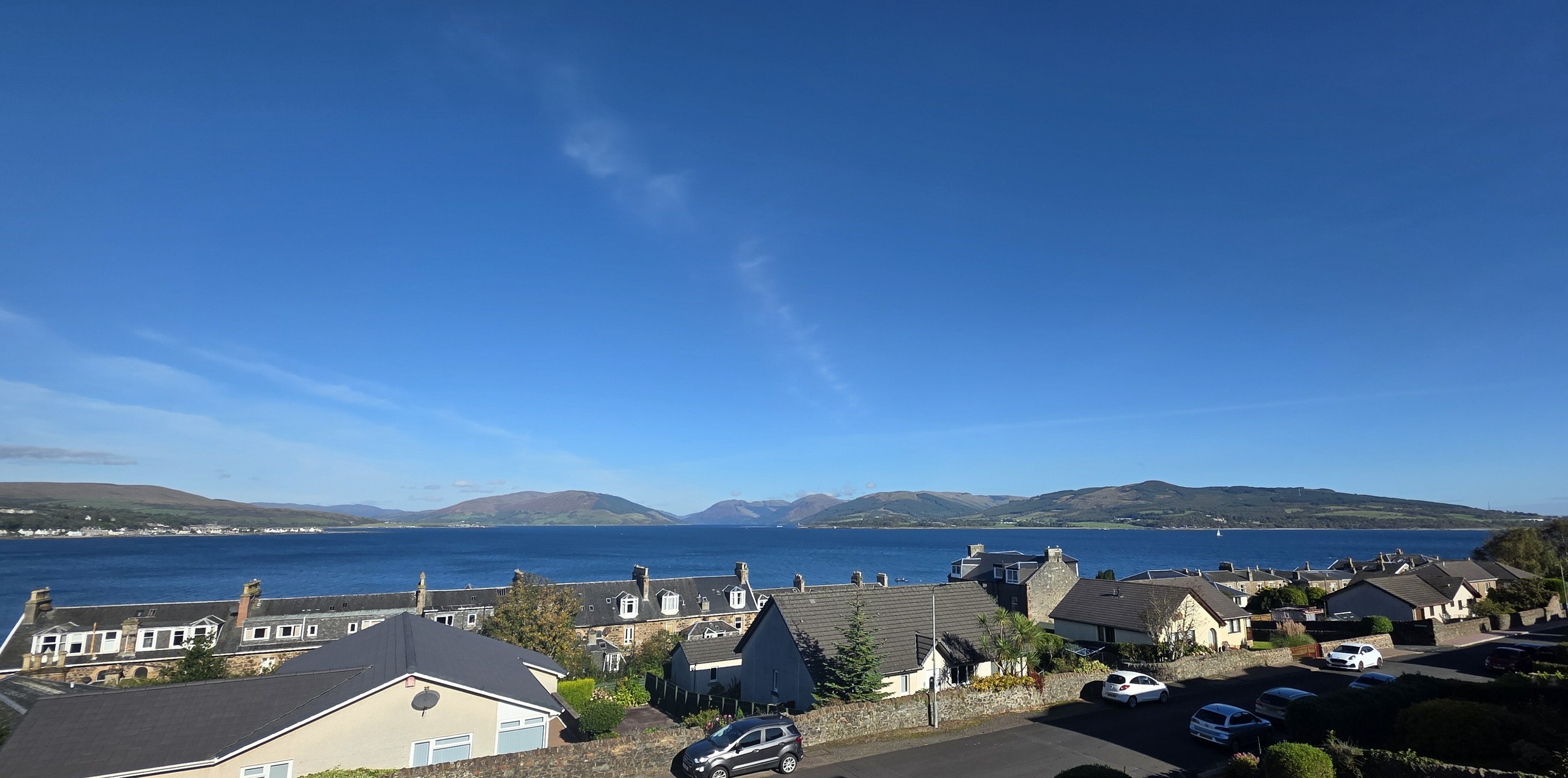 An exceptional opportunity to purchase a beautifully presented, centre first floor flat within a modern development built in 1999. Located on the highly sought-after Crichton Road, this rarely available two bedroom property boasts spectacular, uninterrupted sea views across Rothesay Bay to the Cowal Hills and Loch Striven. The flat is offered in walk-in condition and features neutral décor throughout, creating a light and welcoming living space. The lounge opens onto exclusive balconies—perfect for relaxing and taking in the breathtaking scenery. Private off road parking at rear with designated space. Security entry system. Well-maintained communal garden.